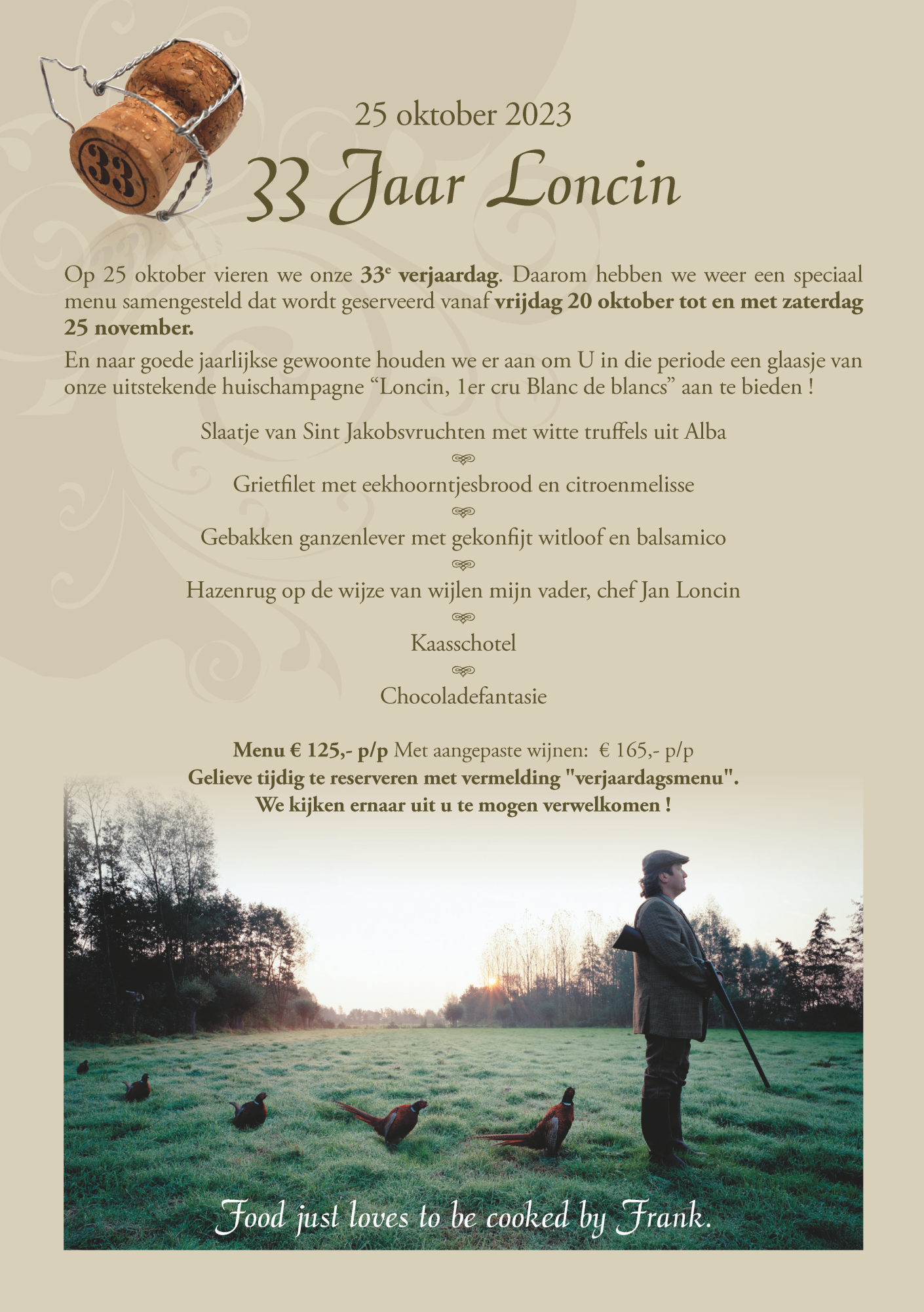 Het jachtseizoen zit er bijna op (fazant nog tot eind januari, alsook ree nu open, maar haas en hertenkalf is gedaan), maar binnenkort begint terug het seizoen van de hopscheuten (zal rond 20 februari zijn), dus dan maken we zeker weer een speciaal menu met deze delicatesse.